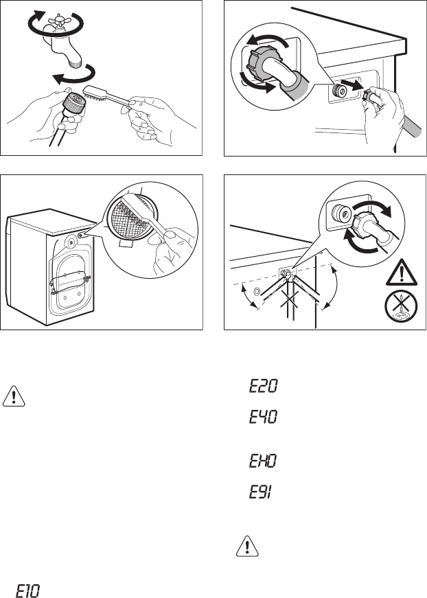 12.7 Rengöring av tilloppsslangen och ventilfiltret