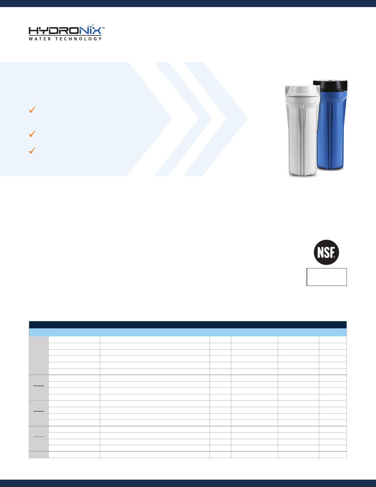 are NSF/ANSI Standard 42 certified for material and structural integrity requirements only.