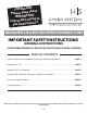 INSTRUCTIONS PERTAINING TO A RISK OF FIRE, ELECTRIC SHOCK, OR INJURY TO PERSONS.