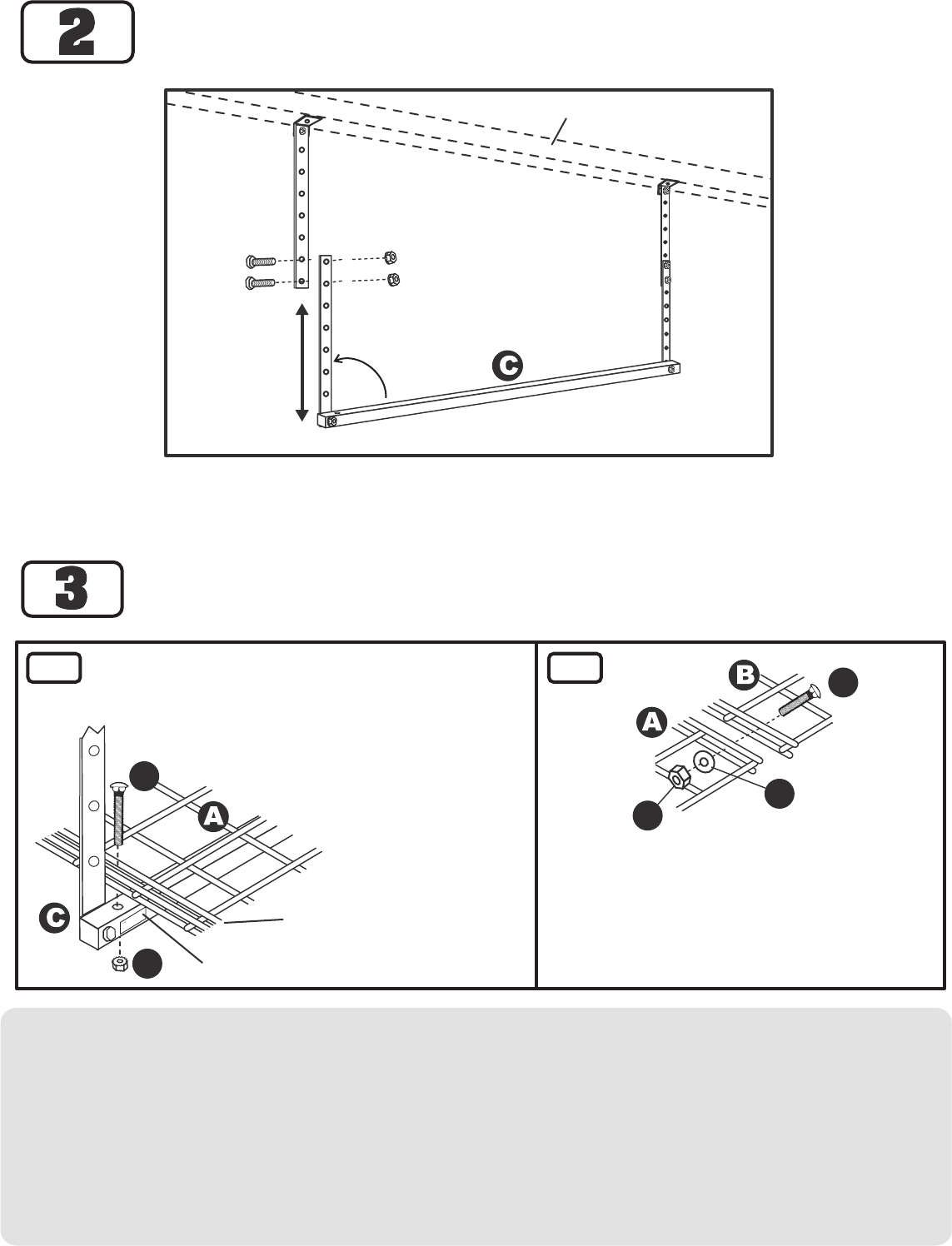 If necessary, adjust length ofSupport Bar Assemblies(C) by removing Hex Bolts & Hex Nuts as shown.