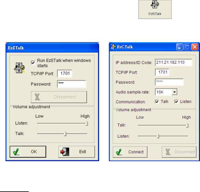 Step 5. Adjust the audio volume for listen and talk to suit your request if needed.