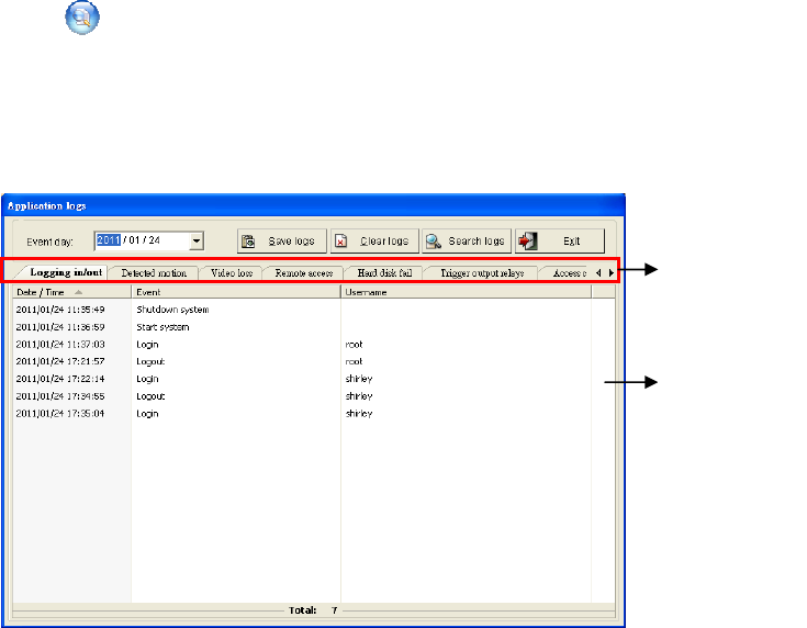 description same as the application logs of Witness Pro, the main difference is the events status which