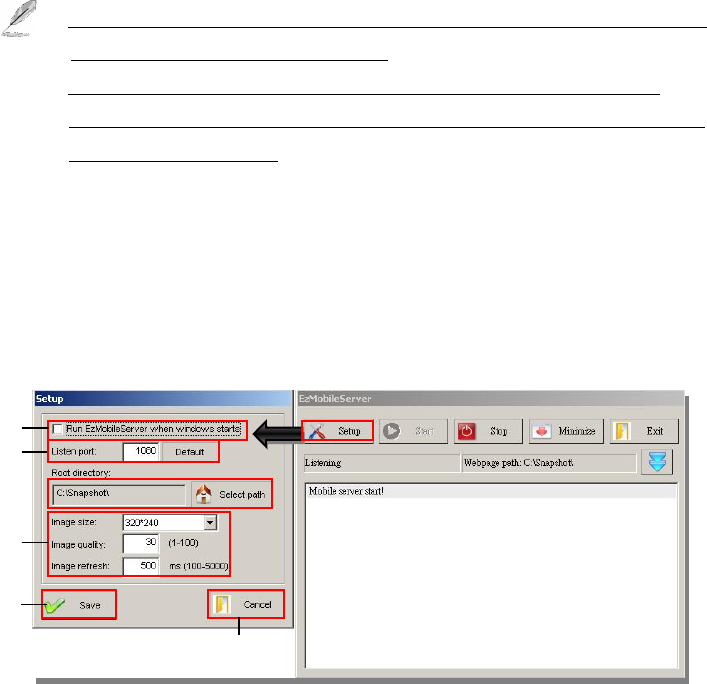 1. Enable “Auto run” function, the ezMobileserver program will be turn on when Windows O.S.