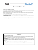 Manual No.: ME0278-4B (November 2012) Head Office: 577-1 Obane Shimizu-KU Shizuoka City Shizuoka 424-0103, Japan TEL +81-54-364-5105 FAX +81-54-364-2589 website: www.iai-robot.co.jp/ Technical Support available in USA, Europe and China Head Office: 2690 W.