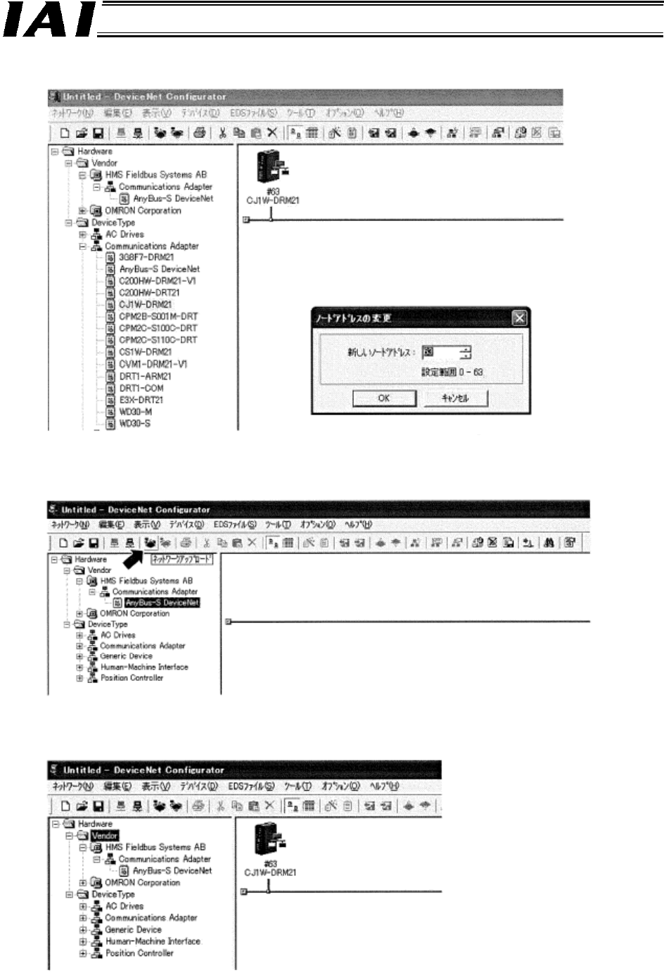 • Next, set the node address to 63 (a desired value between 0 and 63 can be selected).
