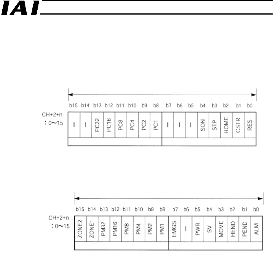 With I/O signals for each axis, each PLC input or output area consists of one word (two bytes),