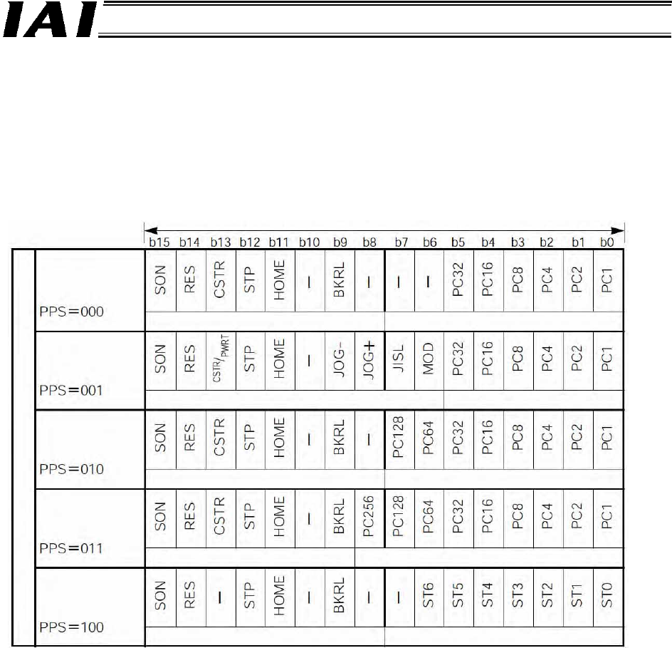 Each axis is assigned one word of PLC output (control signal) and one word of PLC input (status