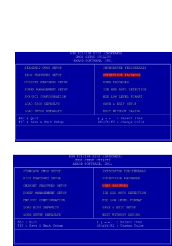 You can set either SUPERVISOR or USER PASSWORD, or both of