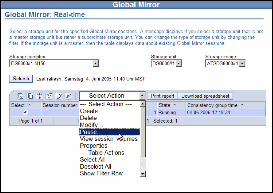 We are now going to pause Global Mirror session number 01, and then resume the session