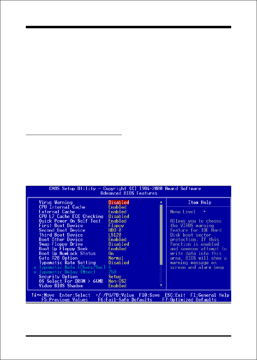 Selecting the BIOS FEATURES SETUP option in the CMOS SETUP UTILITY