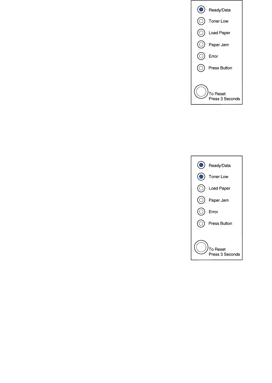 The printer is ready to receive and process data. In addition,