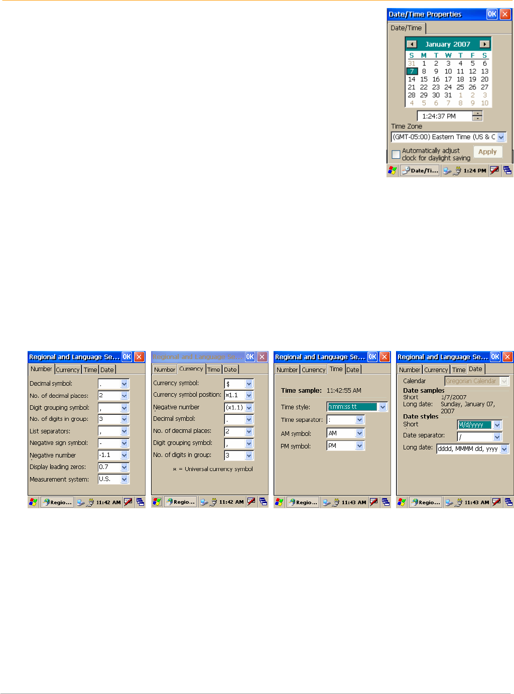 • When you select a country, the time, date, and number formats are adjusted, as well as the week’s