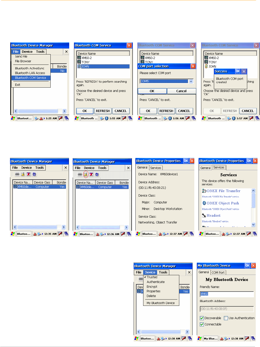 1. Choose COM service from file menu in the Bluetooth device manager.