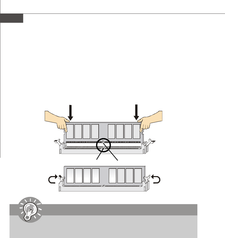 3.The plastic clip at each side of the DIMM slot will automatically close.