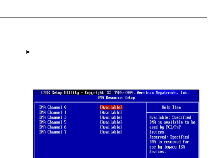 Press <Enter> and you will enter the sub-menu of the items.DMA Resources 0/1/3/5/
