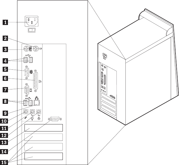 Note: Some connectors on the rear of the computer are color-coded to help you to