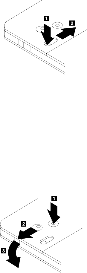 Using the tip of a ball point pen, push and break the lock pin tab1.To