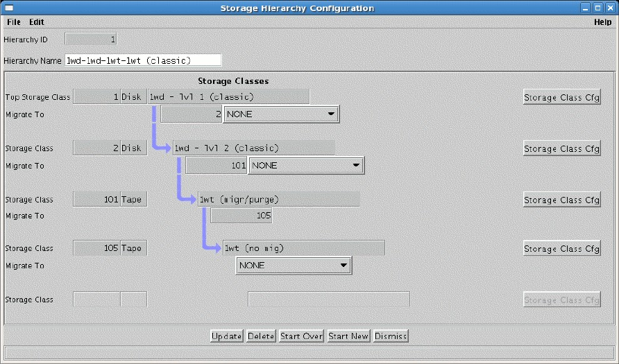 This window allows an administrator to manage a storage hierarchy.