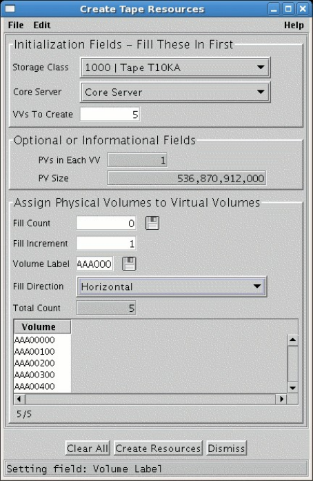 8.1.2.1. Create Tape Resources Window