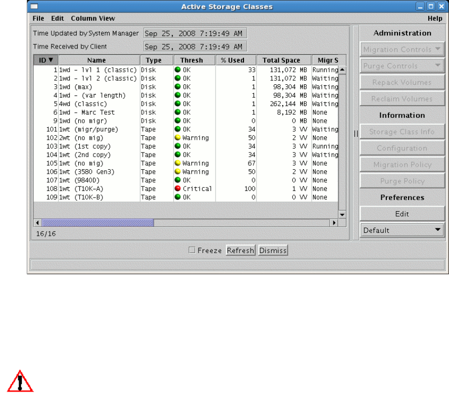 The Active Storage Classes window allows you to view a list of all active storage classes. An active