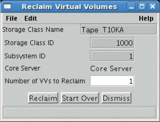 This window is used to run the reclaim utility program which removes and recreates tape virtual