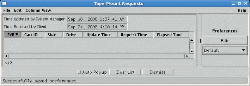 mount requests, including both robotic and operator tape mounts, will be displayed in the window. For