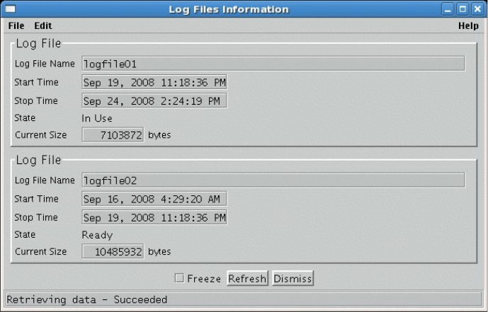 Log File Name. The name of the log file. This will be logfile01 or logfile02.