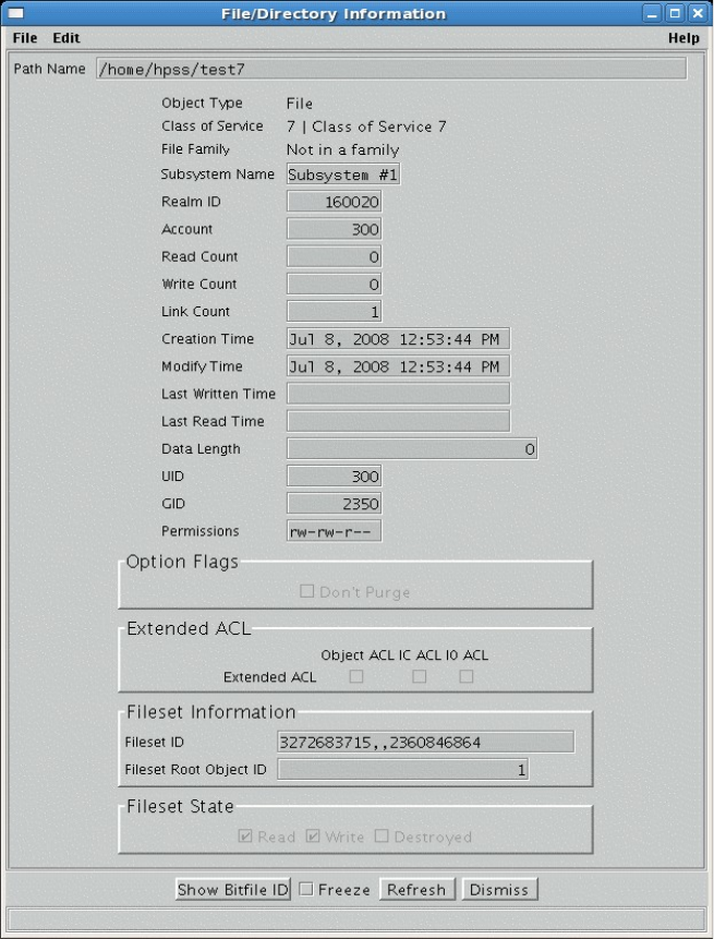 If a file is displayed in the File/Directory Information window, a button labeled Show Bitfile ID will