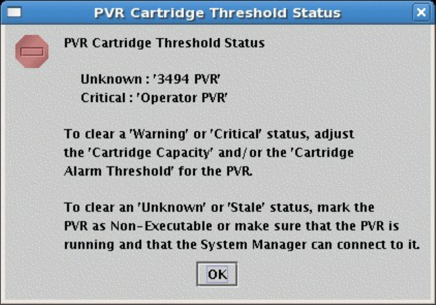 For PVR Cartridge Thresholds the button will display a message dialog with information about the PVRs