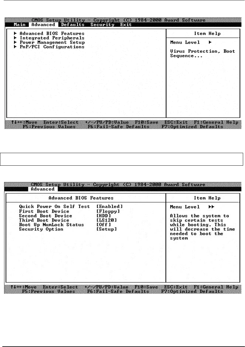 Includes Advanced BIOS Features, Integrated Peripherals, Power Management,