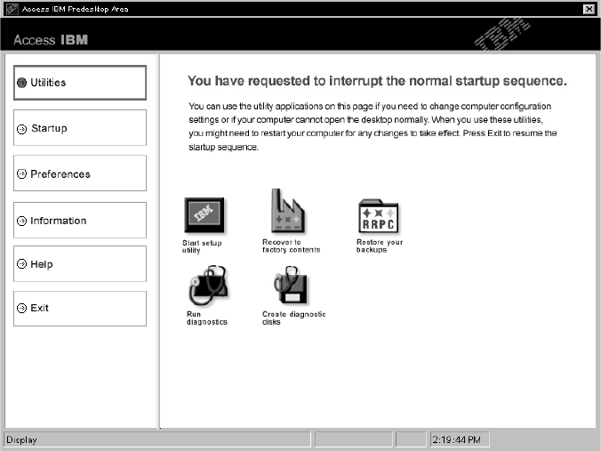 3. Depois que o Access IBM Predesktop Area é aberto na página Utilities,