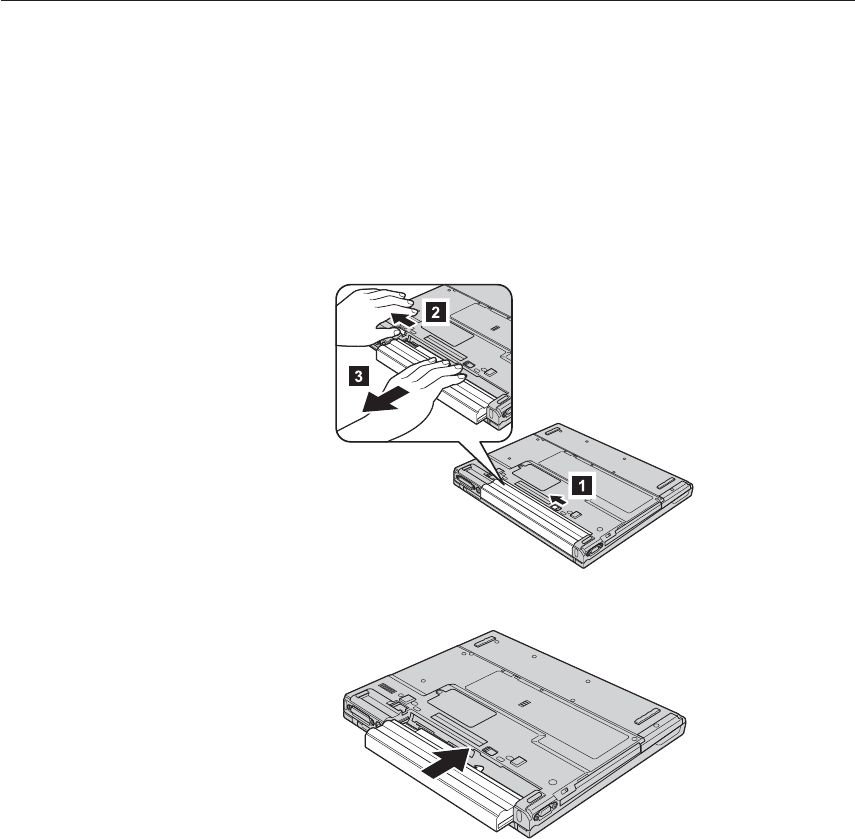 3. Deslize e contenha a trava de bateria na posição destravada 1 e remova