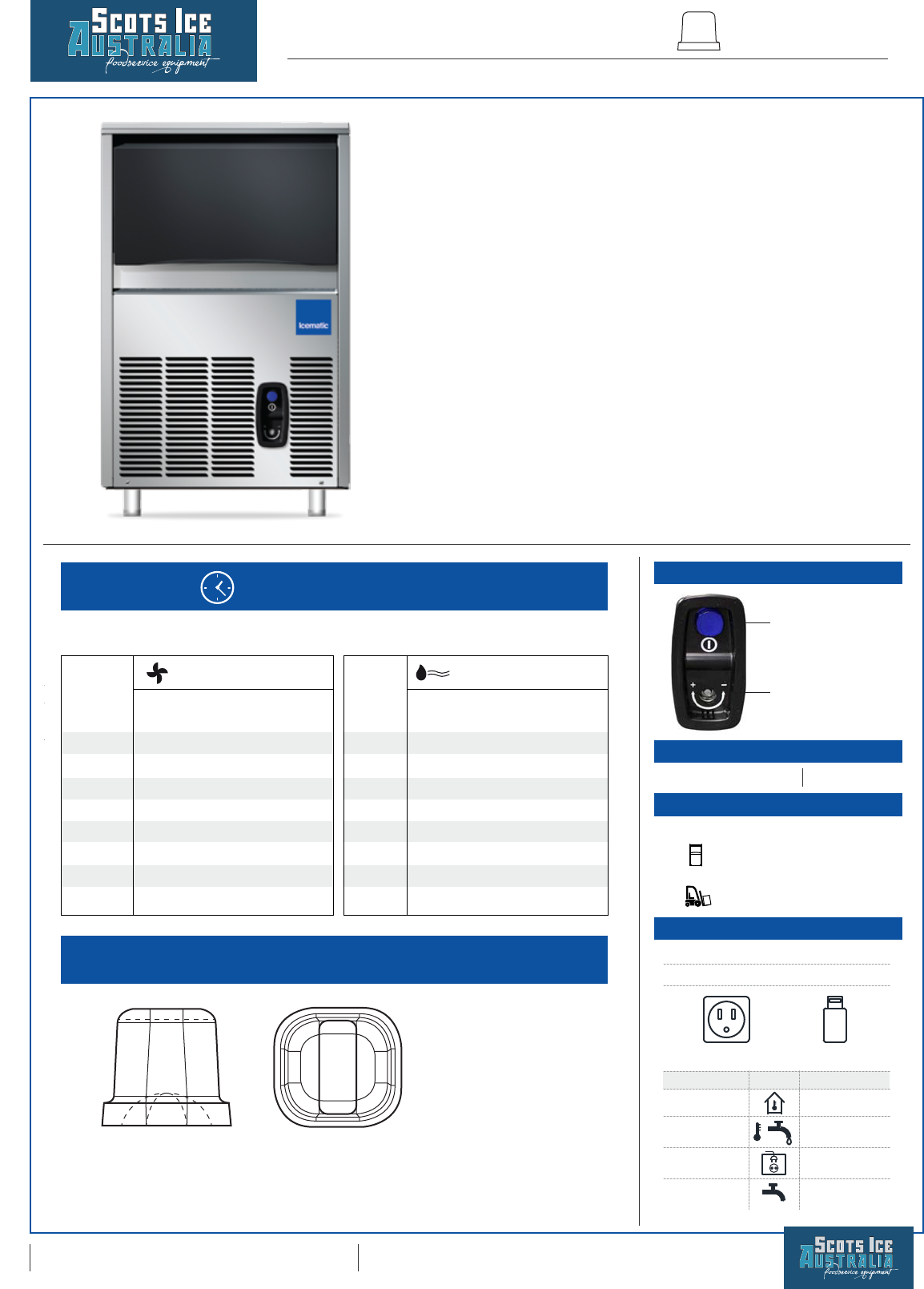 Complete with legs, water & drain hoses + 1 ice scoop.