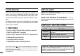 TROUBLESHOOTING PROBLEM POSSIBLE CAUSE SOLUTION 9 REF. The transceiver does • Bad connection to the power supply. not turn ON. • Check the connection to the transceiver. p. 31 No sound from speaker. • Squelch level is too high. • Volume level is too low. • Speaker has been exposed to water. • Set squelch to the threshold point. • Set [VOL] to a suitable level. • Drain water from the speaker. p. 7 p. 7 p. 9 pgs. 5, Transmitting is impossi- • Some channels are for low power or re- • Change channels.