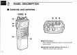 PANEL DESCRIPTION 2 SECONDARY FUNCTION |1 OTHER FUNCTION | Selects VEO or MEMORY mode. {pgs. 17, 25) Writes the VFO contents into the memory channel or call channel when pushed and held! {pgs: 24, 26} Selects receive mode on only the receiver band: {pgs. 4. 17) No secondary function. Turns: ON the display lighting for 5 sec. (p. 48) Turns ON the display Sighting continuously. {p: 48) Calls up the call channel (p. 23) Transfers the contents in this selected memory oF call channel info the VEO. {pgs.