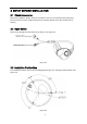 3.2 Installation Steps 3.2.1 Installation Environments The ceiling mount speed dome can be installed in the hard construction ceiling in the indoor environment. Before the installation, please make sure: The ceiling is thick enough to install the expansion bolt. The ceiling can at least sustain the 8x weight of the speed dome. 3.2.2 Installation Steps Note: There are two outlet modes for ceiling mount installation. Don’t drill hole on the ceiling, and open wire outlet from the side of the speed dome.