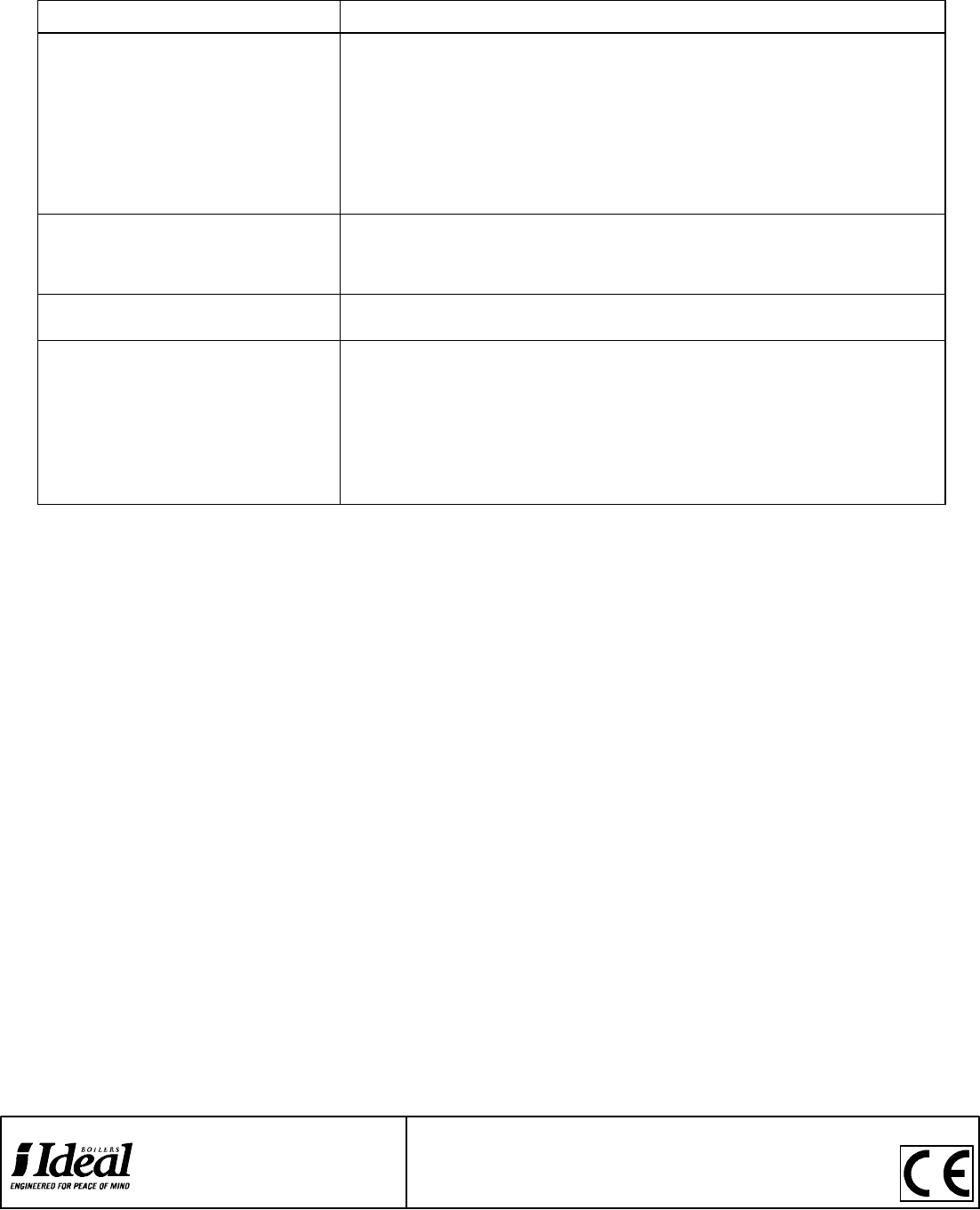 external to the boiler prior to requesting a service engineers visit. Should the problem be found to be other than with the appliance