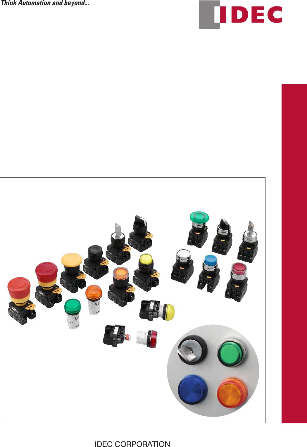 Specifications and other descriptions in this catalog are subject to change without notice. 7-31, Nishi-Miyahara 1-Chome, Yodogawa-ku, Osaka 532-8550, Japan Tel: +81-6-6398-2571, Fax: +81-6-6392-9731 E-mail: marketing@idec.co.jp IDEC CORPORATION (USA) IDEC ELEKTROTECHNIK GmbH IDEC IZUMI (H.K.) CO., LTD. 1175 Elko Drive, Sunnyvale, CA 94089-2209, USA Tel: +1-408-747-0550 / (800) 262-IDEC (4332) Fax: +1-408-744-9055 / (800) 635-6246 E-mail: opencontact@idec.