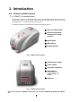SMART-30S (Pic.5) is the standard card printer. It can be printed in single side with the encoding. This manual is prepared based on SMART-30S. SMART-30R (Pic.6) is the rewritable card printer. It can rewrite on rewritable card in single side with encoding. SMART-30D (Pic.7) have a flipper which can enable to print in both side. SMART-30D can print the both side of the card with the encoding. Pic.3 SMART-30S (Standard) Pic.4 SMART-30R (Rewritable) Pic.5 SMART-30D (Dual) 1.1.2 SMART-50 outside feature.