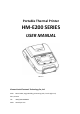 Portable Thermal Printer HM-E200 SERIES USER MANUAL Rev.1.2 Xiamen Hanin Electronic Technology Co.,Ltd. ADD: Room 305A, Angye Building, Pioneering Park, Torch High-tech, Zone, Xiamen Tel.: +86-(0)592-5885993 Web: www.hprt.