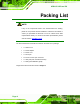 AFOLUX LX Panel PC Packing List NOTE: If any of the components listed in the checklist below are missing, please do not proceed with the installation. Contact the IEI reseller or vendor you purchased the AFOLUX LX from or contact an IEI sales representative directly. To contact an IEI sales representative, please send an email to sales@iei.com.tw. The items listed below should all be included in the AFOLUX LX package.