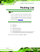 AFOLUX LX Series Flat Panel PC Packing List NOTE: If any of the components listed in the checklist below are missing, please do not proceed with the installation. Contact the IEI reseller or vendor you purchased the AFOLUX LX series from or contact an IEI sales representative directly. To contact an IEI sales representative, please send an email to sales@iei.com.tw. The items listed below should all be included in the AFOLUX LX series package.
