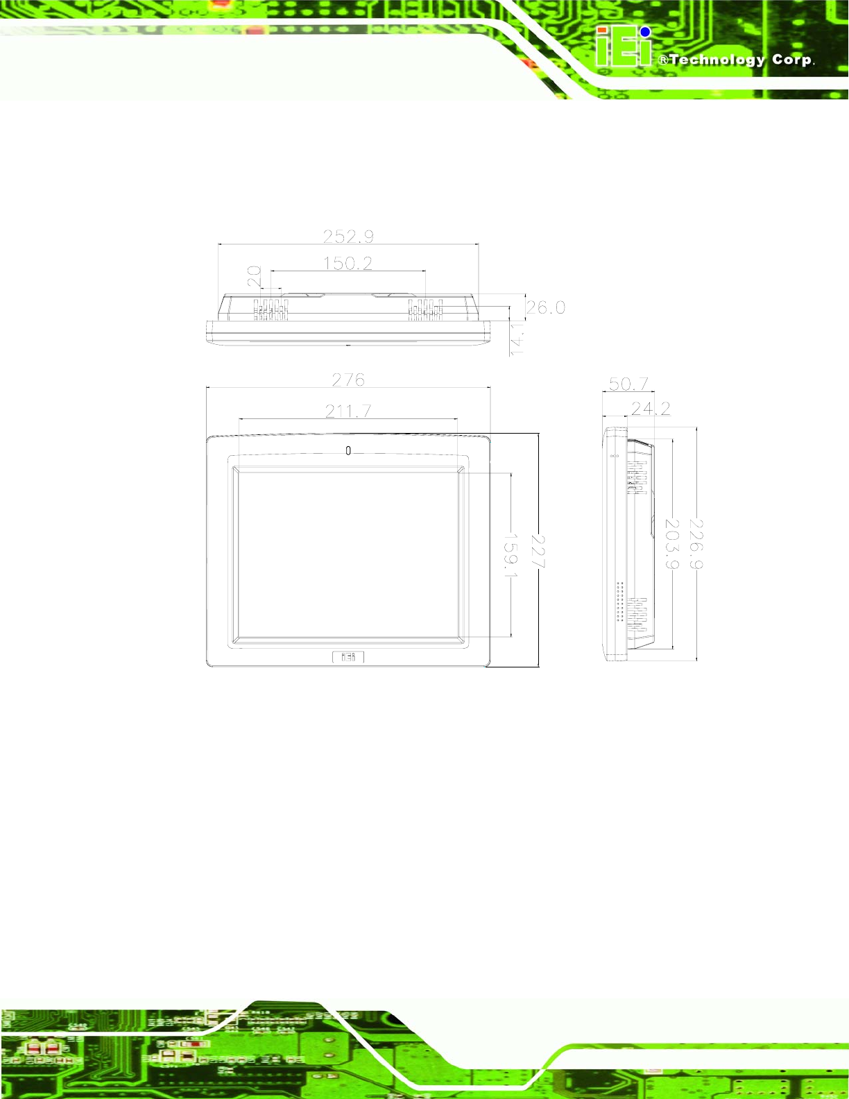 The dimensions of the AFL-10A-LX flat panel PC are shown in Figure 1-7 below.