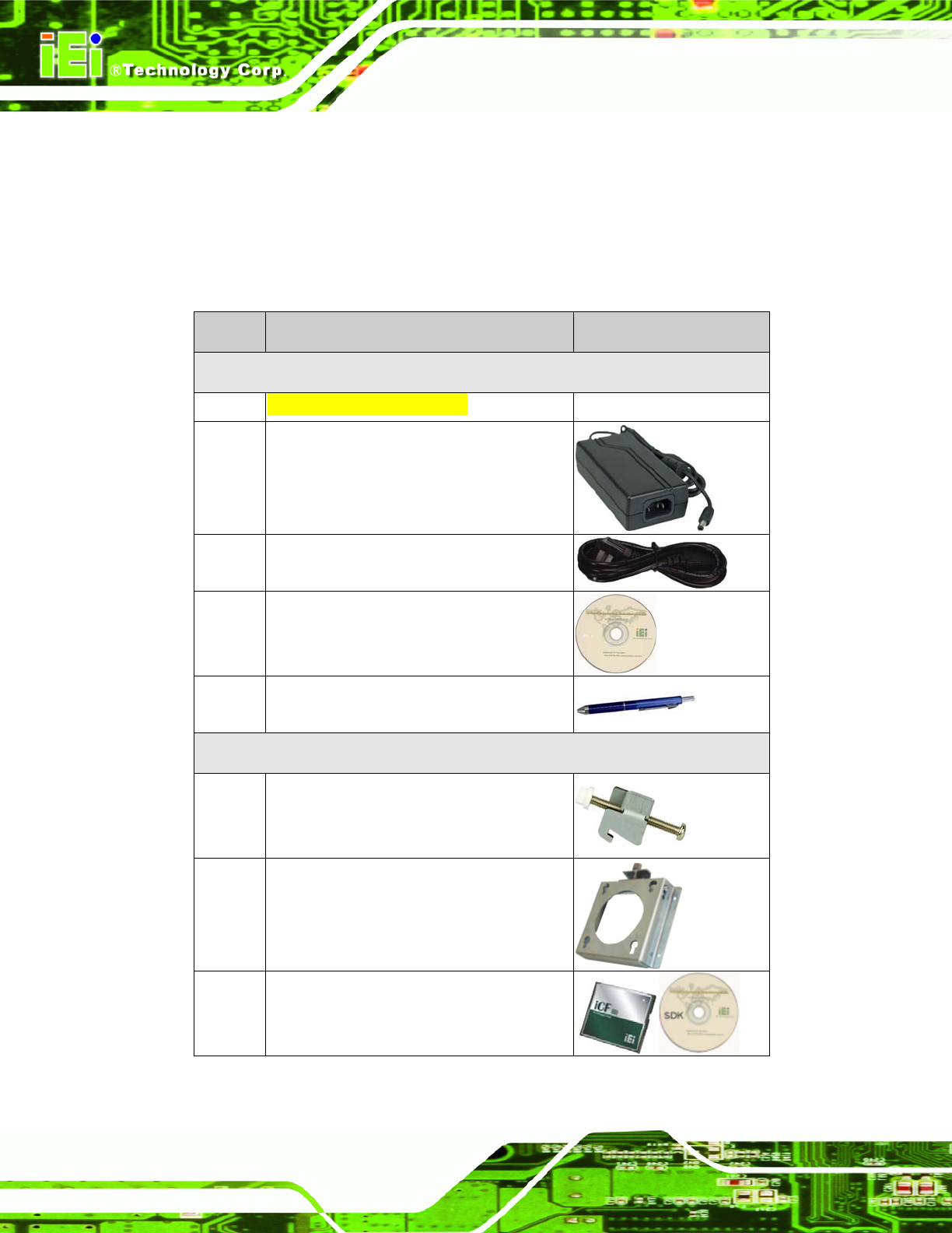 The AFOLUX LX flat panel PC is shipped with the following components: