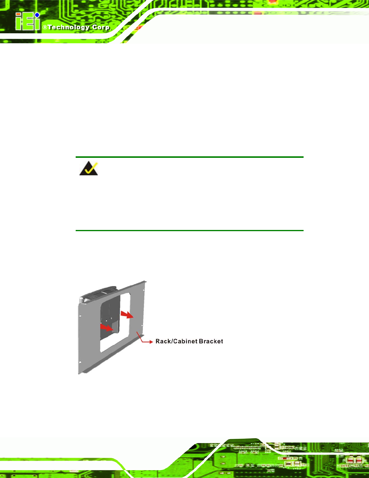 rack/cabinet bracket until the aluminum frame is flush against the front of the