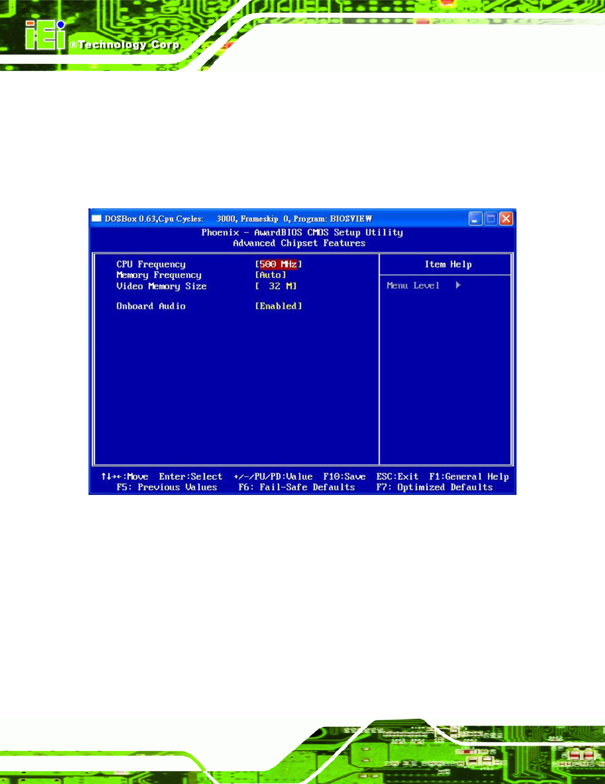 Use the Advanced Chipset Features menu (BIOS Menu 4) to change chipset