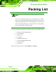 AFL-4 Series-N270 User Manual Packing List NOTE: If any of the components listed in the checklist below are missing, please do not proceed with the installation. Contact the IEI reseller or vendor you purchased the AFL-4 Series-N270 from or contact an IEI sales representative directly. To contact an IEI sales representative, please send an email to sales@iei.com.tw. The items listed below should all be included in the AFL-4 Series-N270 package.