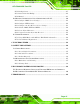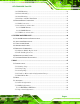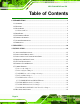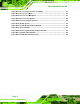 AFL-F08A-N270 Panel PC List of Tables Table 1-1: Function Keys ...............................................................................................................4 Table 1-2: AFL-F08A-N270 System Specifications......................................................................7 Table 2-1: Packing List.................................................................................................................12 Table 2-2: Optional Items.....................................................