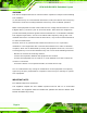 ECW-281B-R21/N270 Embedded System 7.2.3 More Troubleshooting Nothing appears on the monitor after booting up the system: Make sure the monitor is properly connected to the system and the monitor is connected to a power supply and turned on. WARNING! If all troubleshooting measures have been taken and the system still fails to start, contact the IEI reseller or vendor you purchased the ECW-281B/281B2-R21/N270 from or contact an IEI sales representative directly.