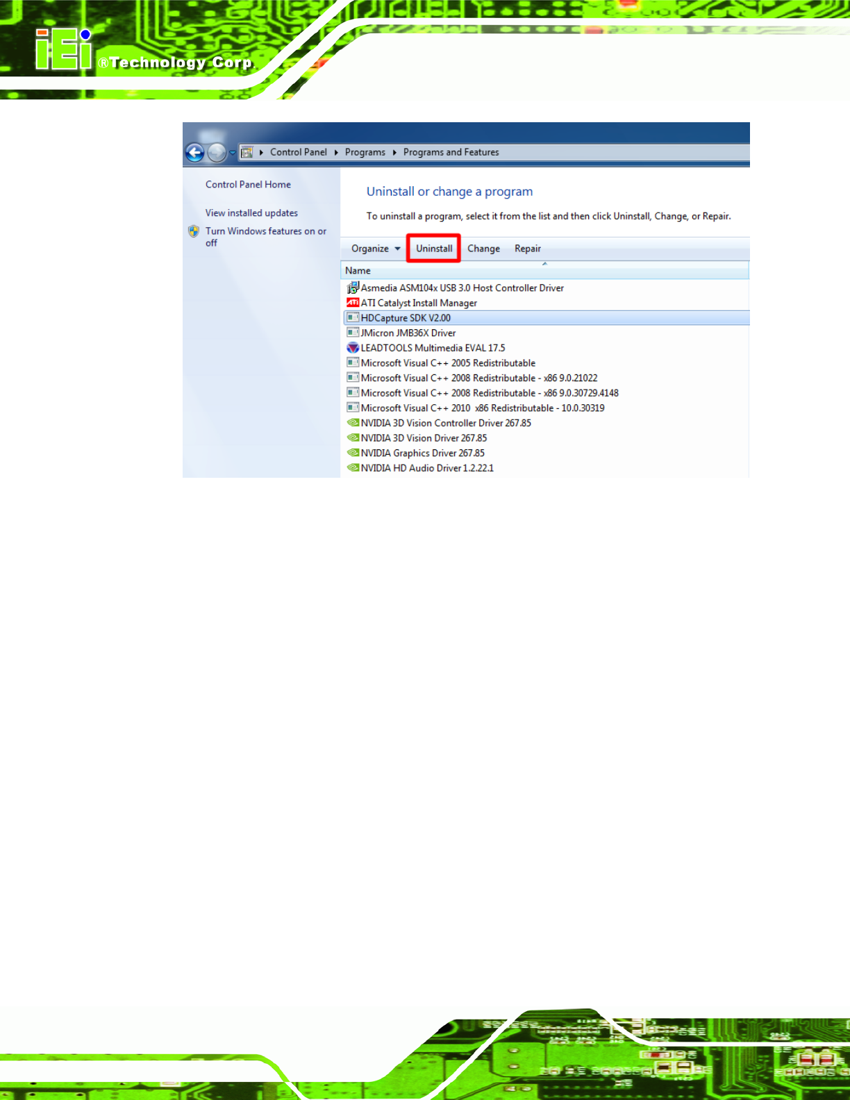 Figure 1-12: Uninstall HDCapture SDK